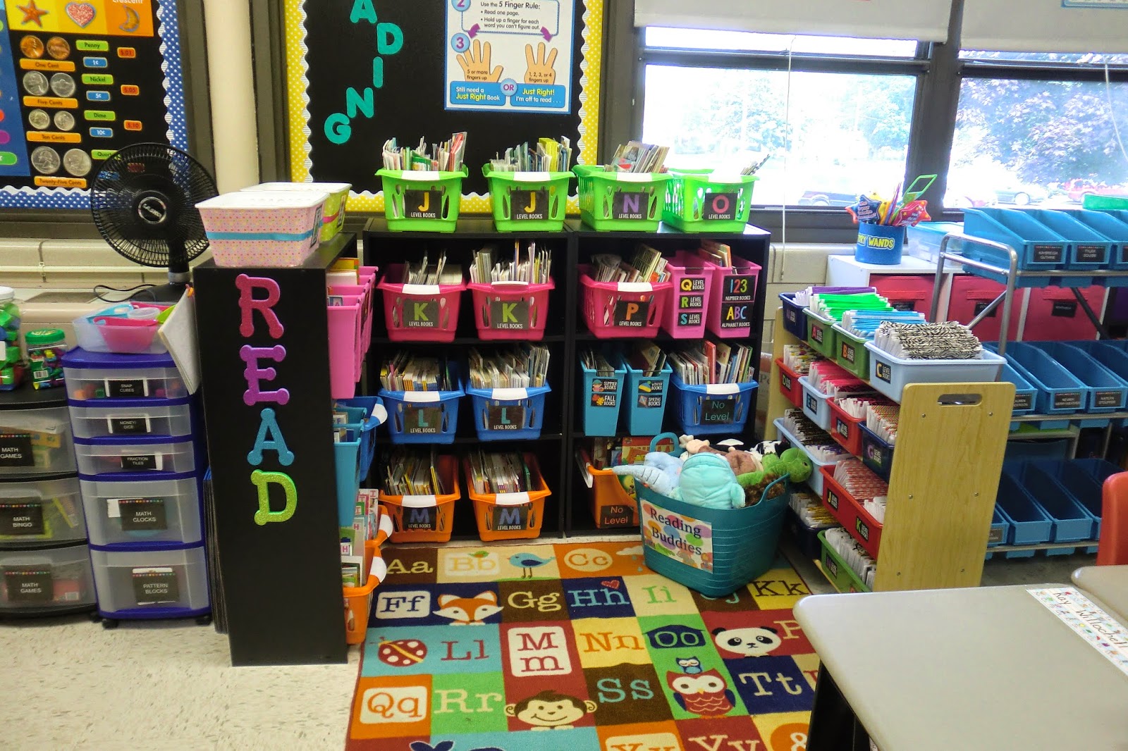 My classroom library and I am probalby the most excited for this part of my room! I made sure every book was leveled or categorized and put into the correct bin. I used Kindercraze's awesome library label kit from TPT!